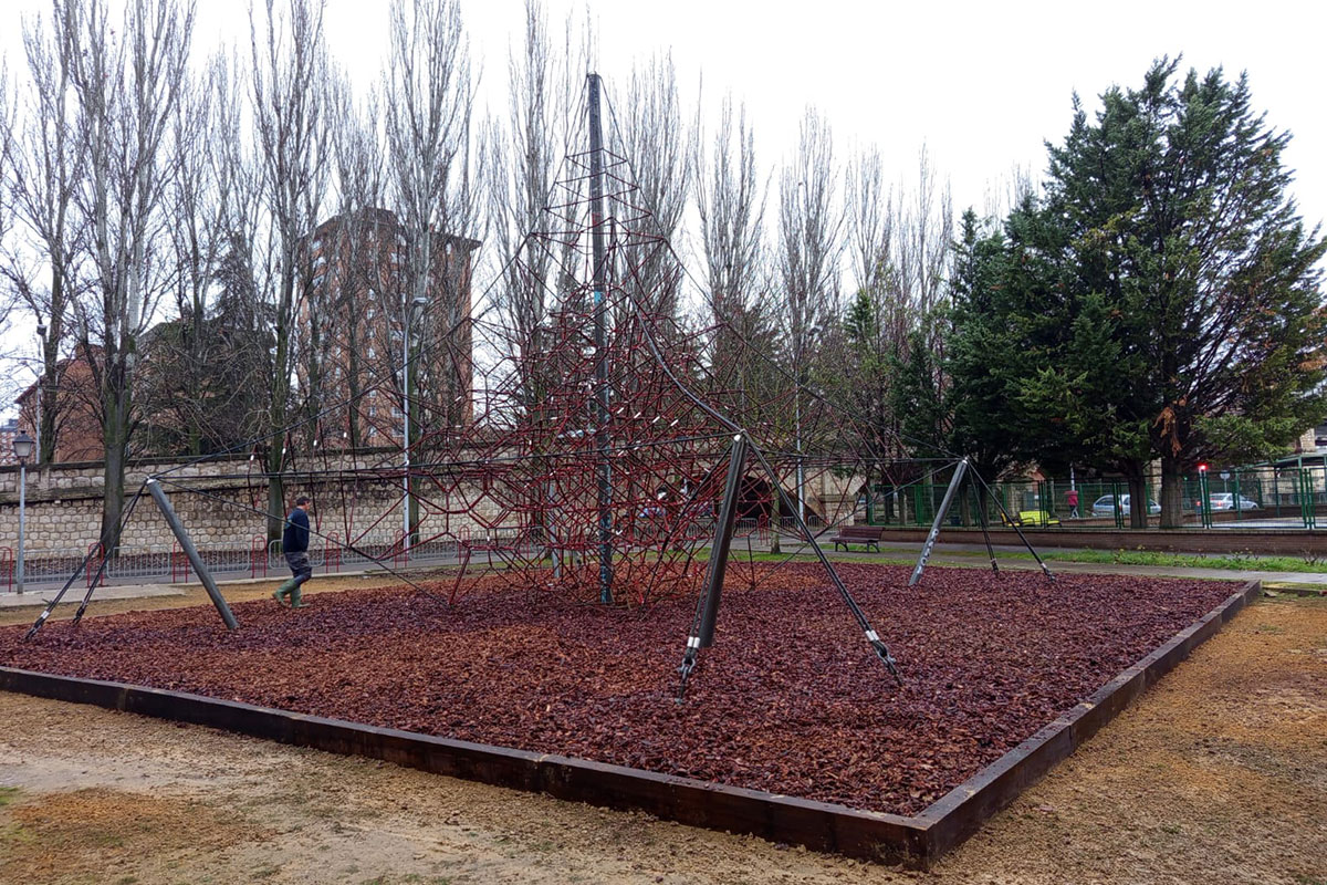 Remodelación del parque infantil, sustituyendo el pavimento existente por corteza.